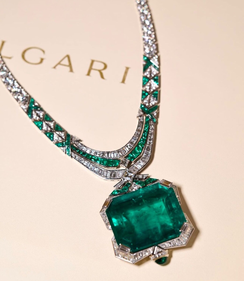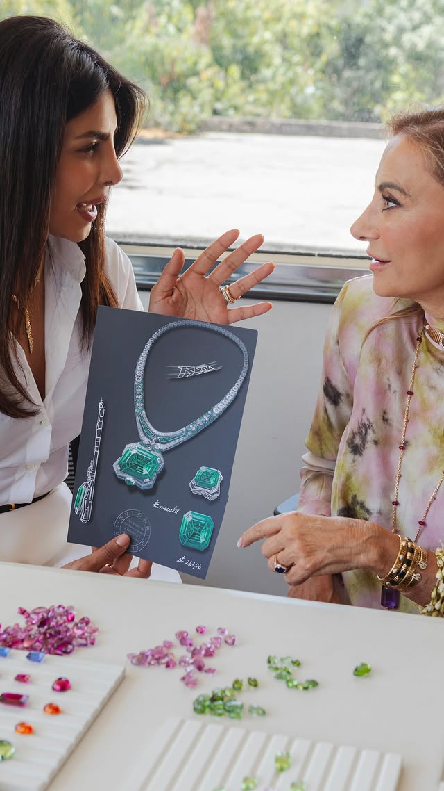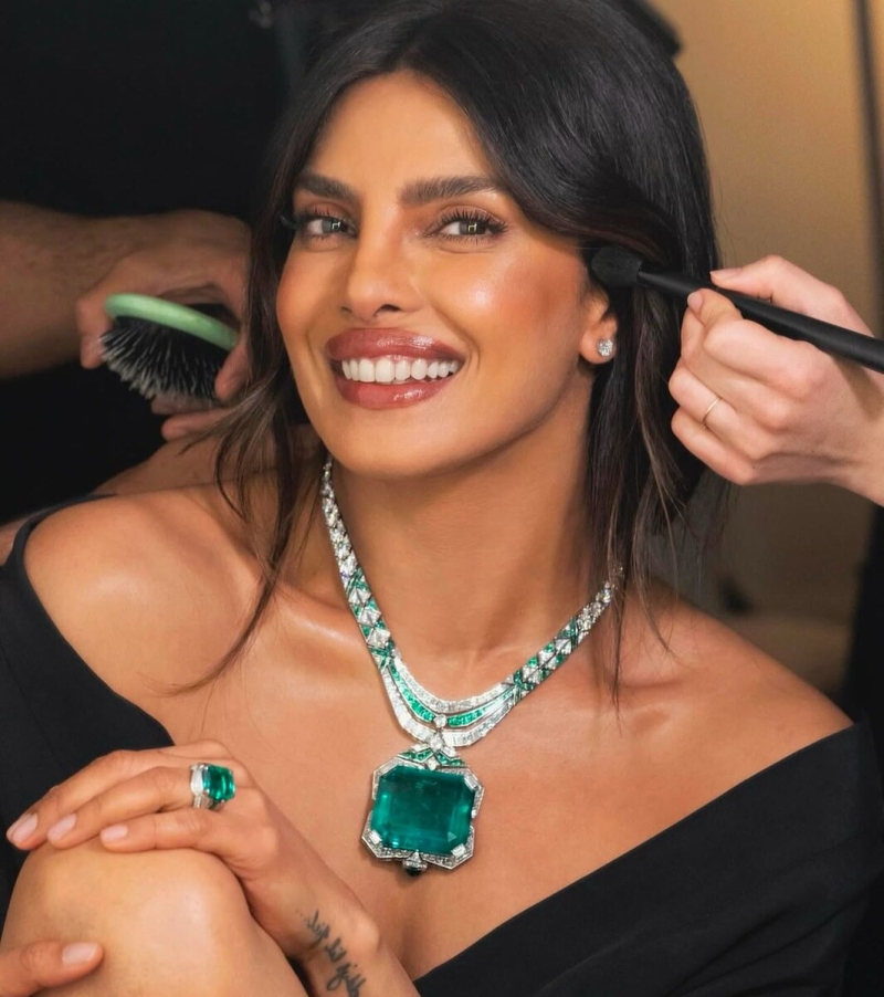 Приянка Чопра в платье Balmain Couture и украшениях High Jewelry Bulgari. Ожерелье из новой коллекции Bvlgari Polychroma High Jewelry «Magnus Emerald». Изумруд в 241,06 карата - один из самых больших и изысканных драгоценных камней в мире. Это абсолютный "каратный!" рекордсмен, который был представлен на Мет Gala 2025. Когда амбассадор бренда Priyanka Chopra погрузилась в процесс создания коллекции Высокого ювелирного искусства Bvlgari Polychroma вместе с креативным директором Lucia Silvestri в Индии, она была в восторге, что потрясающее колье “Magnus Emerald” будет дебютировать на Met Gala.