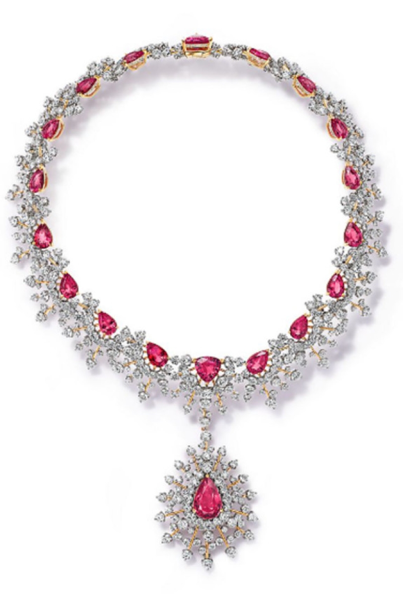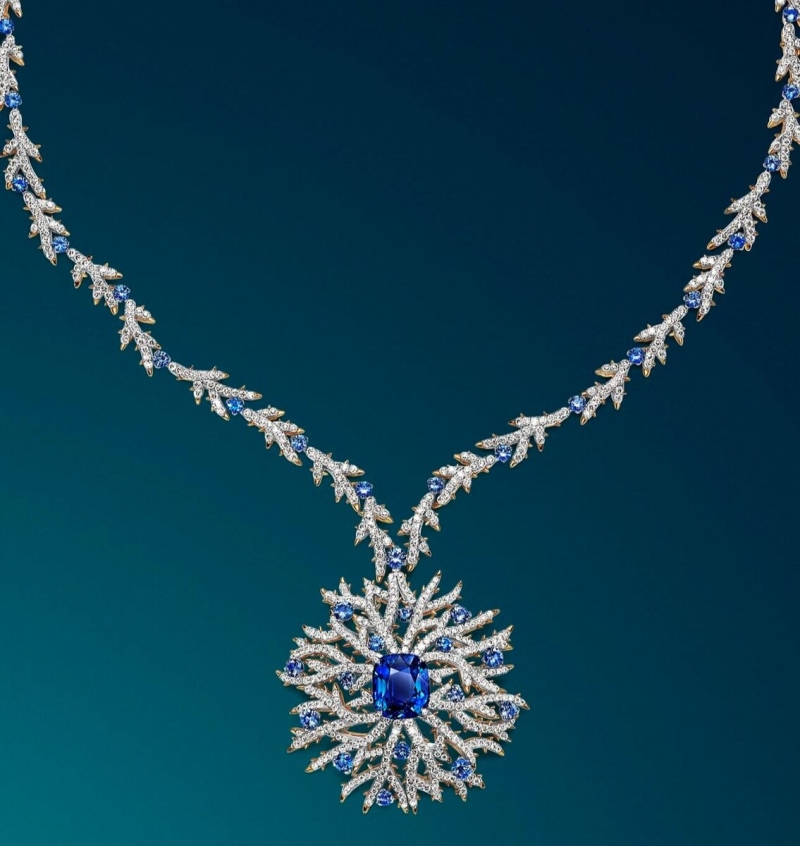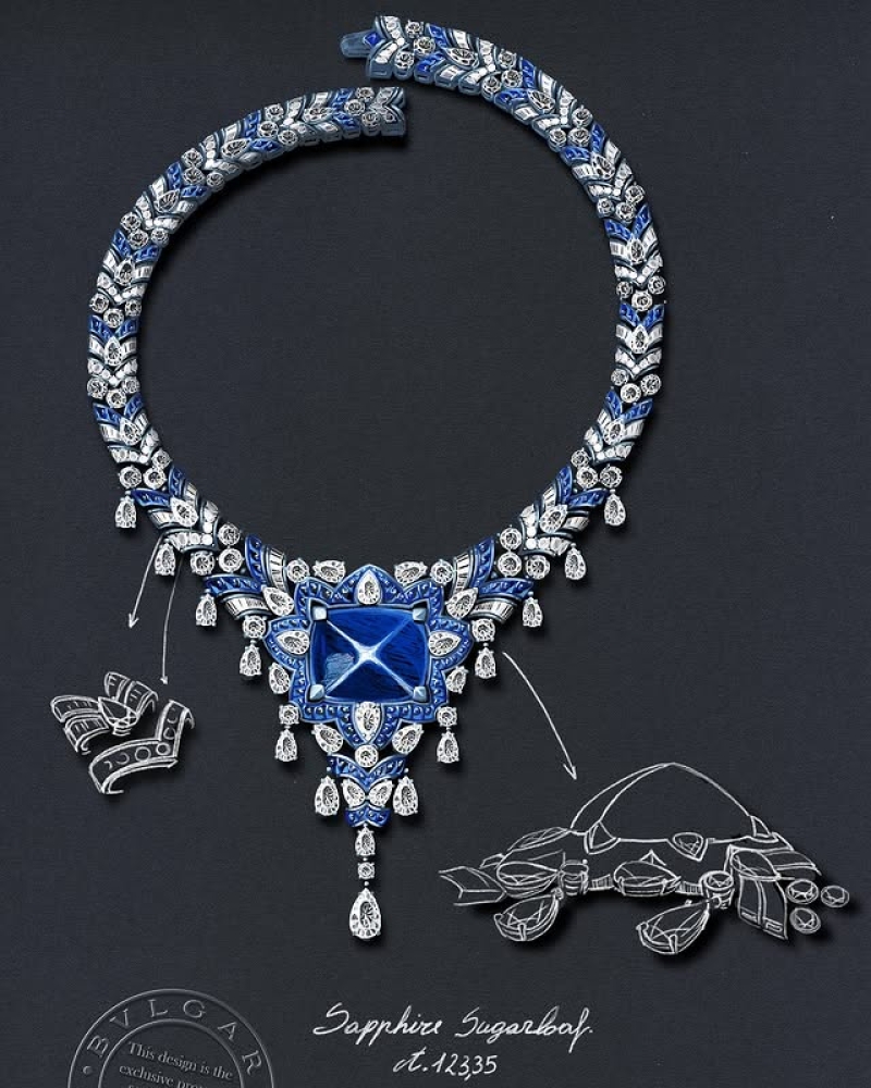 Ожерелье с каплями, украшенное сапфирами, ониксом и бриллиантами.