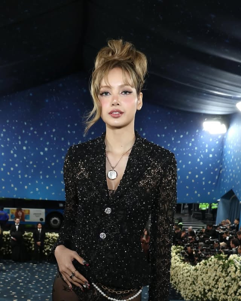 Lisa в Louis Vuitton и со старинным ожерельем из серебряных монет Bulgari. Она сочетала супер редкое украшение с несколькими кольцами и серьгами-гвоздиками с бриллиантами.