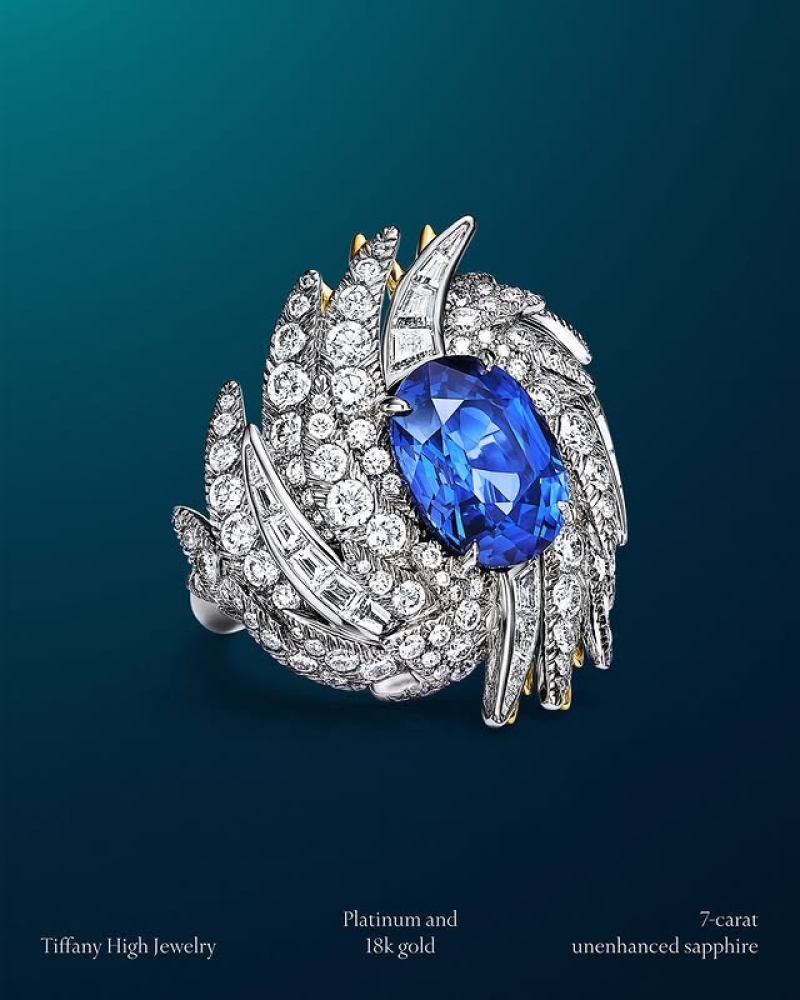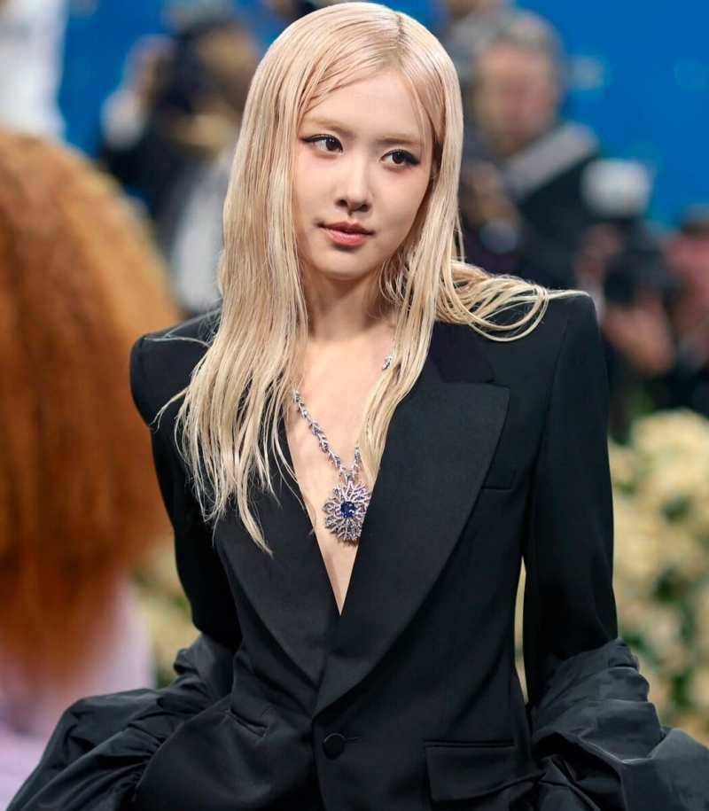 Rosé в образе Saint Laurent и украшениях Tiffany & Co. Колье Tiffany High Jewelry с одним сапфиром огранки «кушон» весом более 14 карат, круглыми сапфирами весом более 11 карат и бриллиантами общим весом более 13 карат. (Возможно, отсылка к культовому ожерелью Роуз из «Титаника»?) О, и она надела подходящее кольцо с сапфиром и бриллиантом.