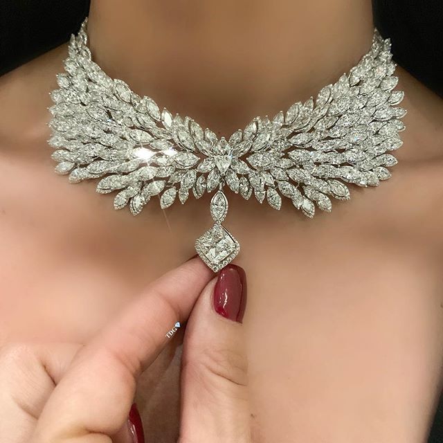 В этом сокровище она была на Met Gala 2019. Бриллиантовое ожерелье, изготовленное Oscar Massin в последней четверти XIX века, выполнено в виде серии кластеров, каждый из которых украшен подушечным ромбом внутри двойной рамки из розовых бриллиантов, между которыми расположены подушечные ромбы в форме когтей и подвешены похожий капельный кулон. Каждый из центральных бриллиантов выложен в открытый collet (зажим), а тонкий край каждого из этих collet искусно украшен мелкими розовыми бриллиантами, которые в то время в основном добывались в центрах огранки Антверпена и Амстердама. Эти collet прикреплены в двух местах с обратной стороны к кольцу из крупных розовых бриллиантов, так что центральное крепление кажется парящим внутри. Это ожерелье относится к этому последнему периоду творческой карьеры ювелира, возможно, к его сенсационной выставке 1978 года в Париже. Это роскошное, но элегантное ожерелье ярко демонстрирует те элементы утончённости и новаторства, которые Massin привнёс в свои украшения и в широкую ювелирную индустрию на протяжении всей своей блестящей карьеры.