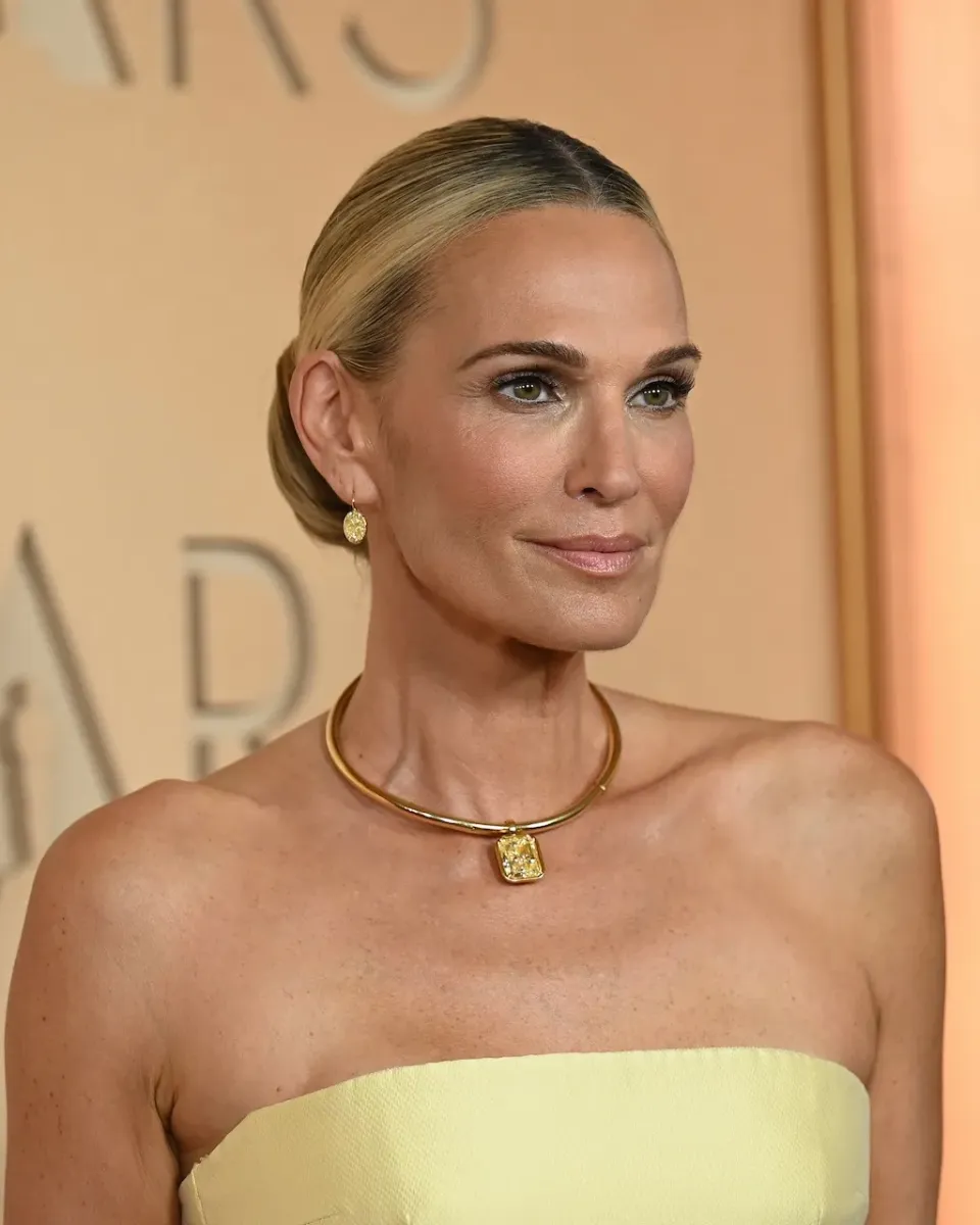 Molly Sims в мягком жёлтом платье Monique Lhuillier без бретелек и с множеством пышных жёлтых бриллиантов от Rahaminov Diamonds.