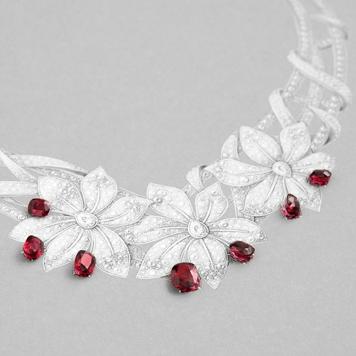 Многослойное колье из 148 камней общим весом почти 55 карат. Колье — Rose at Dawn (29.2 карата).