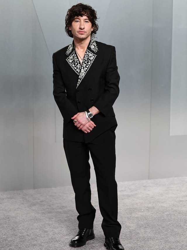 Pedro Pascal сочетал цветочную брошь из атласа и перьев из коллекции Chanel с часами Chanel Boy Friend от Chanel в золоте с ремешком из телячьей кожи с узором аллигатора. Chanel Boy Friend — самая современная линейка часов Chanel: прямоугольный силуэт, ручной работы детали циферблата, чёткий язык дизайна и при этом безошибочно узнаваемый дом. Большая модель оснащена механическим механизмом с ручной намоткой и запасом энергии 42 часа. Стоимость: 19 300 евро. Паскаль использует часы и брошь как скоординированный подход и модную отсылку к стилю Chanel.
