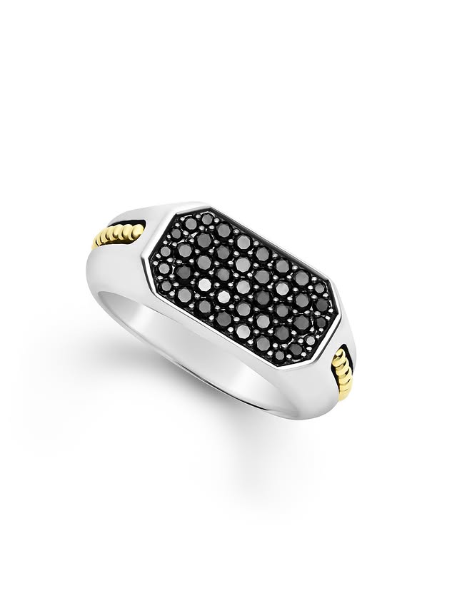 Two-Tone Octagon Black Diamond Ring price $1,450. Чёрные бриллианты и 18-каратное золото Caviar образуют это яркое кольцо.