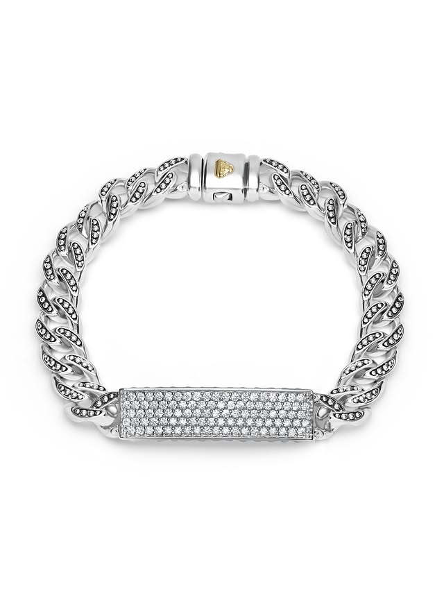 Silver Curb Link Diamond Bracelet price $8,900. Детали из стерлингового серебра, украшенные бриллиантами на краях Caviar.