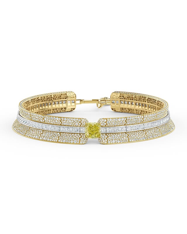 Ожерелье Summer Choker из коллекции Metamorphosis Couture с бриллиантом Fancy Intense Yellow с огранкой объемом 9,06 карата, обрамлённого 57,15 каратными бриллиантами из жёлтого и белого золота.