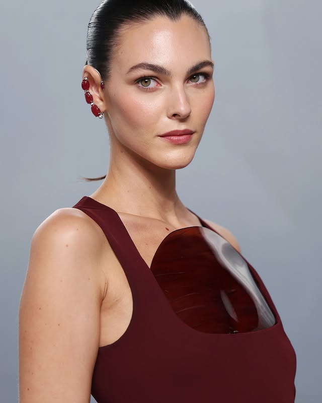 Супермодель Vittoria Ceretti на вечеринке Vanity Fair в рубиново-красном платье Alaïa и рубиново-красной манжете на ухе Repossi в тон платью. Взятая из архивов Repossi, эта заметная работа 2004 года принесла высокий гламур с четырьмя рубиновыми и шпинельными кабошонами, общим весом 37k.