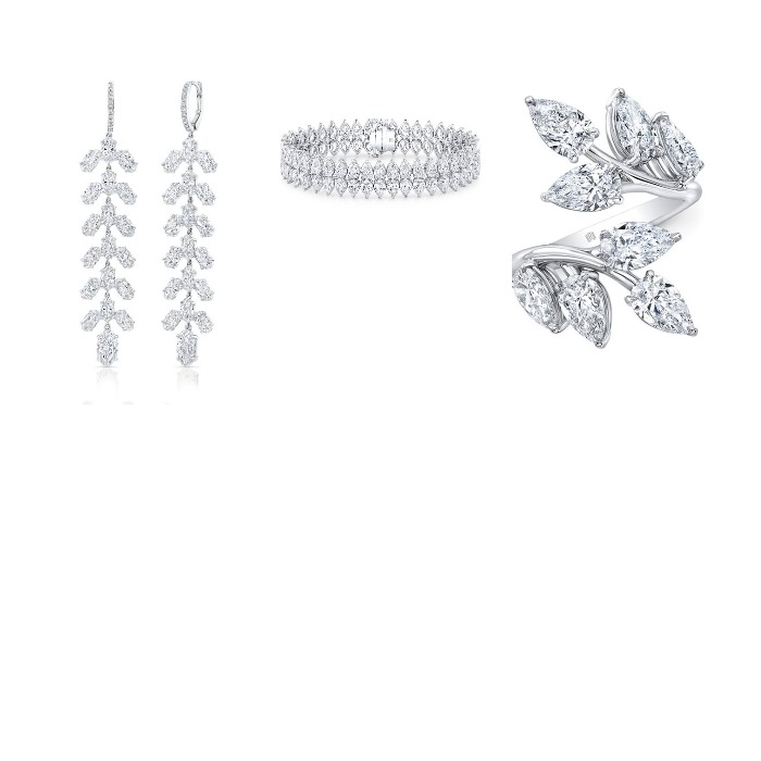 Бриллиантовые украшения от Cindy Chao из последней коллекции White Label от Art Jewel. Серьги демонстрируют изысканную композицию из 84 грушеобразных бриллиантов общей весом 30,22 карата, в сочетании с кольцом Diamond Branch с белыми и жёлтыми бриллиантами, что отражает органическую элегантность мотива Cindy Chao’s Four Seasons.