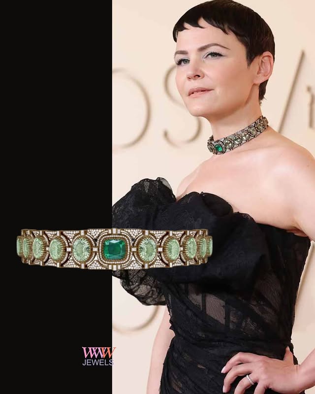 Gennifer Goodwin в платье Monse и потрясающем колье Sabyasachi High Jewellery из золота 18 карат с центральным изумрудом 10,35 карата в окружении 84-каратными мятно-зелёными турмалинами и бриллиантами EF VVS VS с блестящей огранкой.
