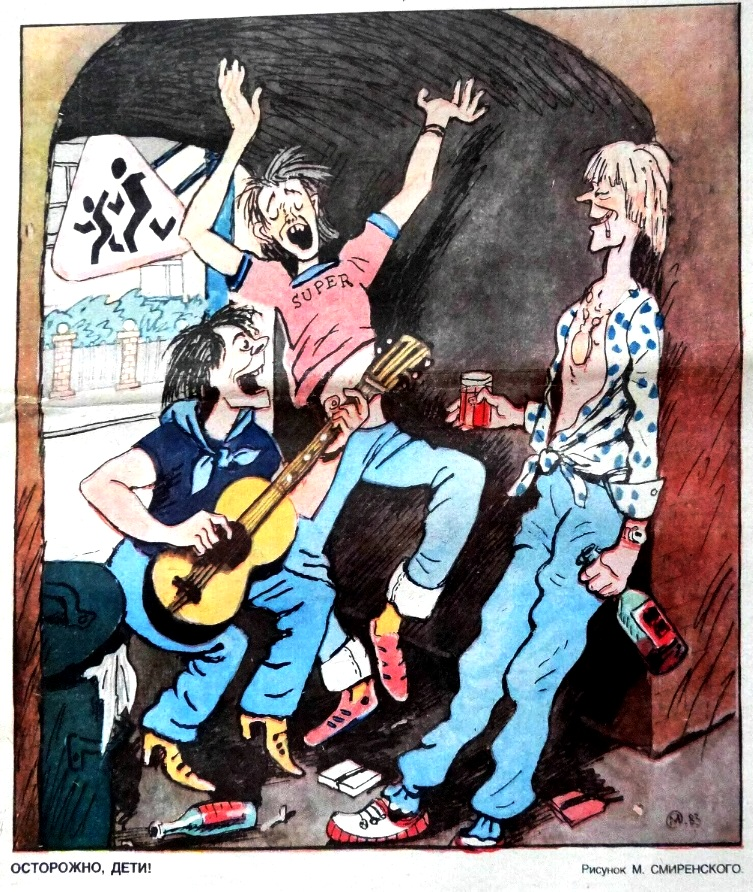 А в целом ничего нового - каждое старшее поколение обязательно ужасается "молодежи" - я еще помню, как мы ходили в кино на фильм 1989 года  "Авария - дочь мента", который снял не очень известный режиссер Михаил Туманишвили, где в красках показана "эта молодежь". Нам - примерно ровесникам той самой Аварии - не надо было объяснять, что режиссеру фильма за 50 - там эти панки да металлисты были показаны как в журнале "Крокодил" на иллюстрациях к посту - чтобы бабульки ужаснулись))), но мы-то видели, что этот маскарад вообще не про нас. Так и сейчас часто расписывают зумеров в таких красках, чтобы их родители и бабушки пошипели, а зумеры обиделись. Ну а мы - обсудили)
