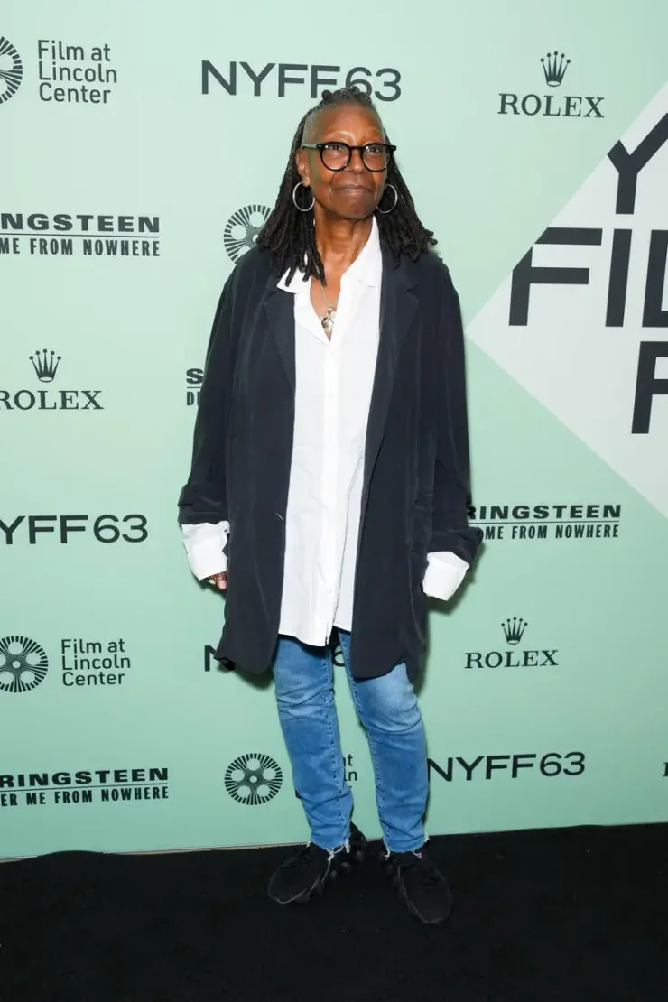Whoopi Goldberg на премьере фильма во время 63-го Нью-Йоркского кинофестиваля особо не заморачивалась. Одесса Янг в блестящем, Джулия Робертс в костюме, Ребекка Фергюсон в коже, а Вупи просто - джинсы, рубашка и кардиган. Подумаешь фестиваль, она и так себя королевой считает.