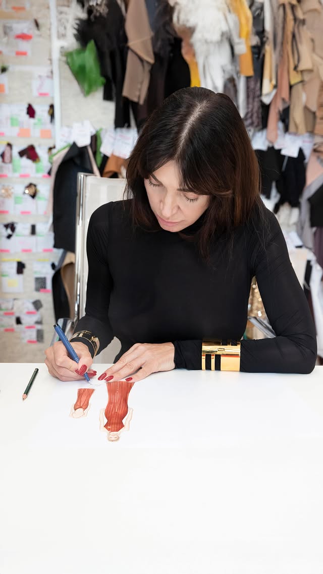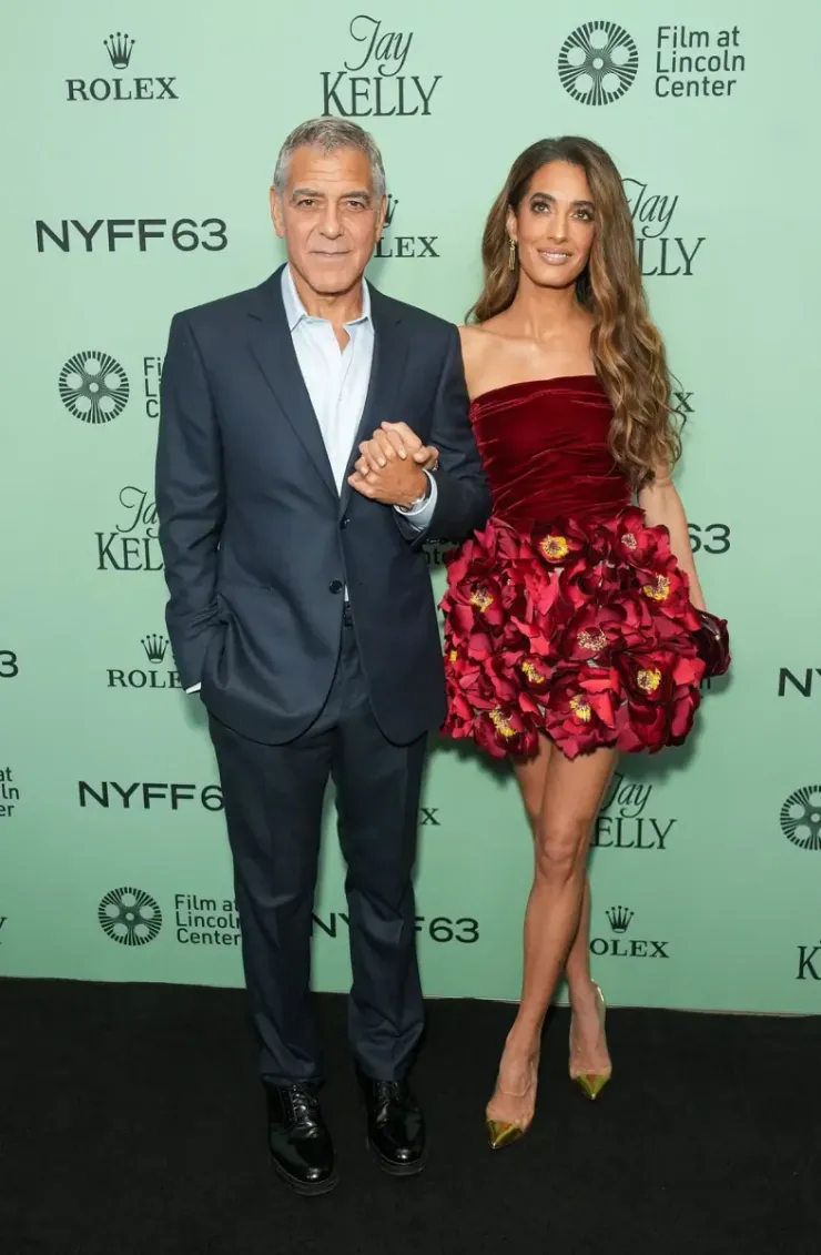 Amal Clooney в мини-платье Oscar de la Renta из коллекции осени 2025 года, безусловно, произвела впечатление: бордовый бархатный лиф богат и утончен, а трехмерная юбка с цветочным принтом имеет кутюрную театральность, которая мгновенно делает его незабываемым моментом на красной ковровой дорожке. Цвет на ней потрясающий — мы не часто видим Амаль в более глубоких драгоценных тонах, поскольку она склонна тяготеть к ярким, свежим цветам круглый год, — но этот более насыщенный оттенок идеально подходит для осени и придает ей другой вид гламура. Цвет смотрится на ней прекрасно, но эта юбка из магазина для рукоделия — очень странная вещь. Все равно Амаль более эффектна в более длинных и гладких платьях, которые удлиняют ее статную фигуру. Бордовый бархатный клатч Oscar de la Renta с бантом и золотые туфли-лодочки Gianvito Rossi Plexi завершили ее образ.