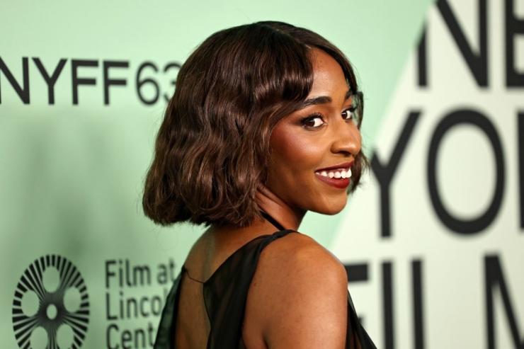 Ayo Edebiri в черном платье Chanel с шифоновым лифом и бархатной юбкой. Эдебири полагалась на вечную элегантность черного цвета, превращая его в сложный, многослойный образ знаменитости. Платье представляет собой изысканное платье-двойку, состоящее из контрастных материалов. Юбка представляет собой колонну из плюшевого, чернильно-черного бархата, ниспадающую прямо на пол, создавая длинный, изящный силуэт. Бархатная ткань поглощает свет, придавая глубину и богатство, которые мгновенно кажутся роскошными. Якорем образа является лиф с прозрачной черной накладкой, изготовленной из нежной ткани. Эта накладка выполнена с крестообразным вырезом и мягко драпируется на приталенной черной основе, создавая тонкую, скромную линию декольте, позволяя плечам и рукам быть видимыми сквозь ткань. Образ получился утонченный, современный и достойный фестивальной премьеры. Ее украшения минималистичны — одни элегантные часы на левом запястье и серьги Chanel с бриллиантом Stopper Rock Crystal, что позволяет полностью сосредоточиться на богатых материалах дизайнерского наряда.