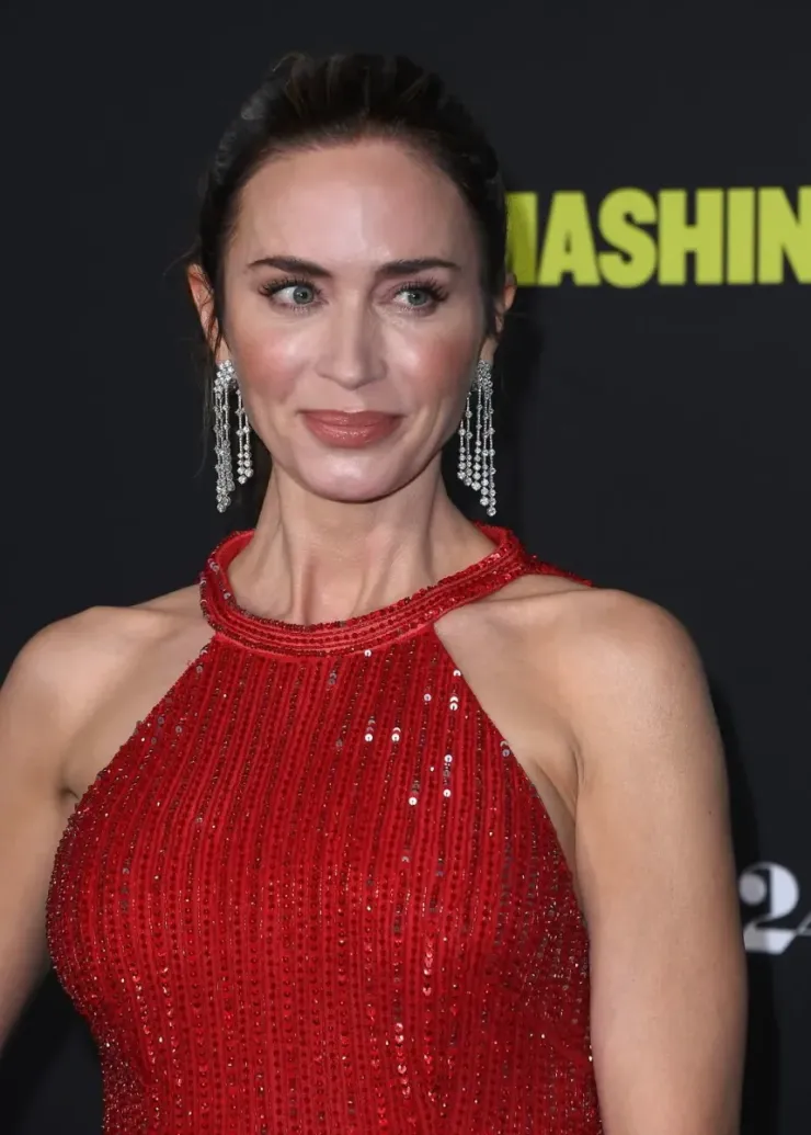 Emily Blunt в красном платье от Elisabetta Franchi. Платье Блант в пол, созданное Джессикой Пастер, было сшито на заказ итальянским домом моды Elisabetta Franchi с вечной, сияющей элегантностью. Спроектированное с верхом на бретельке, открытой спиной и силуэтом русалки, оно было сконструировано с помощью линий ручного бисера и вышивки пайетками, которые мерцали в мигающих огнях. Элизабетта Франки придумала платье для Эмили Блант, которое должно было олицетворять ее силу и грацию. Актриса выглядит действительно великолепно, и да, может быть, просто. Серьги, любезно предоставленные De Beers, выполнены в виде водопада, с нитями бриллиантов, ниспадающими каскадом в драматичной, размашистой манере. И Блант сочетала их с подходящими браслетами и кольцами с бриллиантами от того же лейбла.