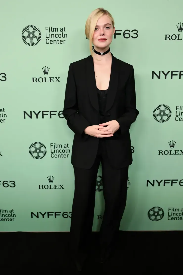 Elle Fanning в элегантном костюме The Row. Этот образ гораздо более минималистичен, чем мы привыкли видеть у Эль, которая уже давно тяготеет к мечтательным кутюрным платьям и сказочному гламуру. Чистый, четкий покрой показал естественную элегантность Эль, доказав, что ей не нужны украшения или объем, чтобы привлечь внимание. На ней был двубортный блейзер в паре с широкими брюками. Под ним проглядывало структурированное бюстье от Fleur du Mal, добавляющее тонкий шарм, вдохновленный нижним бельем. Сдержанная утонченность The Row стала идеальным новым холстом. Украшения Cartier, в том числе чокер Panthère de Cartier, завершили образ, добавив достаточно остроты, чтобы уравновесить костюм с укороченной спиной.
