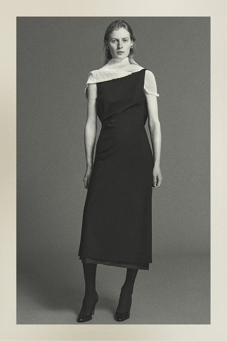 Greta Lee меняла свой стиль на каждом из трех своих пресс-релизов, и для своего третьего выхода она вернулась к минимализму в The Row. Черное платье из коллекции весны 2026 года выглядело сдержанно, но драматизм заключался в деталях, особенно в красиво задрапированной спине. Платье отличалось структурированным, минималистичным дизайном с квадратным вырезом и чистыми линиями, подчеркивающими изысканность и сдержанный гламур. Ткань представляла собой роскошный, матовый материал, скорее всего, высококачественную шерсть или креп, обеспечивающий изысканную драпировку и тонкие движения. С украшениями от Tiffany & Co. Diamonds образ был образцом тихой роскоши — урезанным, но, несомненно, дорогим.