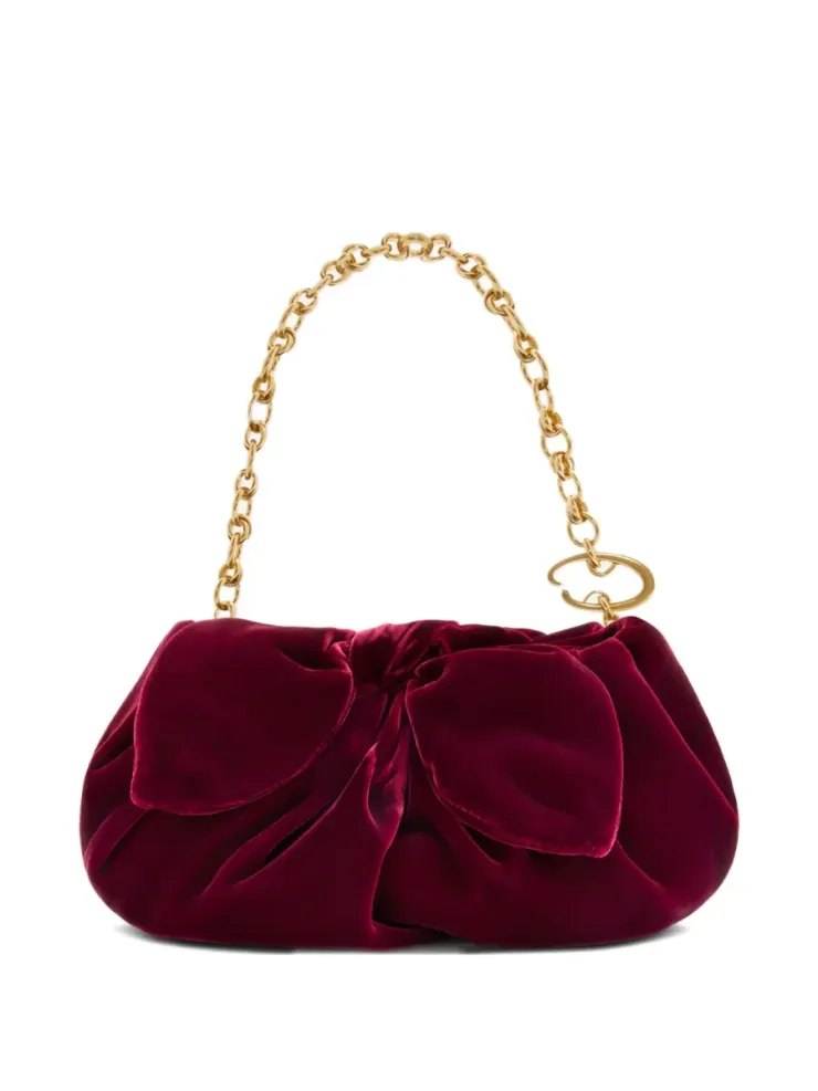 Oscar de la Renta мини-клатч Bow. Темно-красный бархат, дизайн со сборками, декор в виде банта, цепочный ремень, застежка на зажиме. Страна производства: Италия. $1,546.