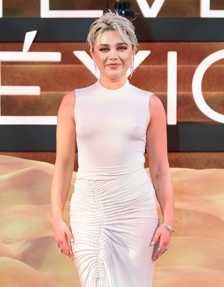 Florence Pugh на мероприятии для фанатов фильма ‘Dune: Part Two’ в Мексике. В платье Standing Ground Spring 2024. Это платье действительно великолепное и рюши не только подчеркивают ее силуэт, но и немного напоминают растение/животное прямо с Дюны.