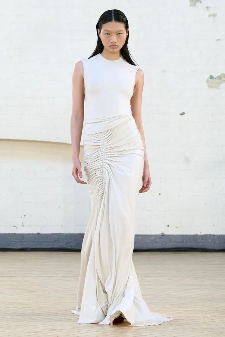 Tilda Swinton уже не один раз была в Standing Ground — и каждый раз все были в шоке. Тильда — муза мечты для этого лейбла. Чистые линии, современные силуэты и точная драпировка — была создана для тех, кто относится к моде как к искусству перформанса. И в этих платьях она делает именно это. Элегантный и утонченный Standing Ground - отличный выбор бренда для Тильды, особенно потому, что она одна из немногих знаменитостей, которые могут придать дизайну длинные линии, необходимые для передачи всего величия изделия.