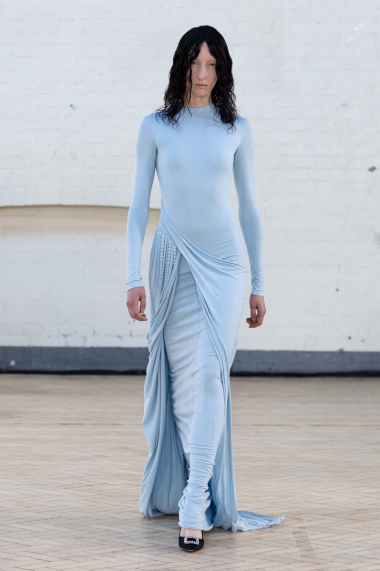 глюки Плюшкина, некоторые из этих платьев даже идеальную фигуру изуродуют. То есть идея самого кроя интересная, но вот изящная Наоми Харрис получилась без талии...