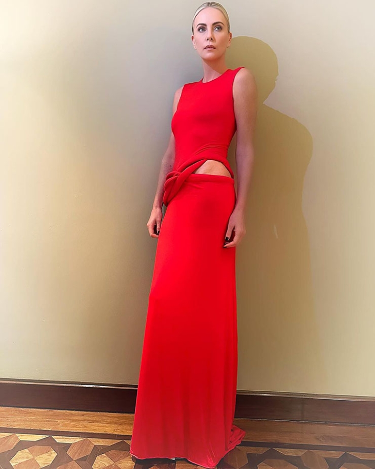 Charlize Theron в Нью-Дели, Индия, где она продвигала работу своего проекта Charlize Theron Africa Outreach Project. Шарлиз выглядела красиво и статно в этом красном платье из коллекции Standing Ground Spring 2023. Создается ощущения, что за этим выбором цвета был смысл. В индийской культуре цвета играют очень важную роль. Красный цвет символизирует любовь, преданность, силу и храбрость. Красный цвет часто ассоциируется с богиней-воительницей Durga, которая символизирует силу и мощь, о которых сразу думается, когда видим Шарлиз Терон, особенно в этом платье. Единственное, что тут странная посадка на бедрах - похоже, она неправильно натянула нижнее белье.